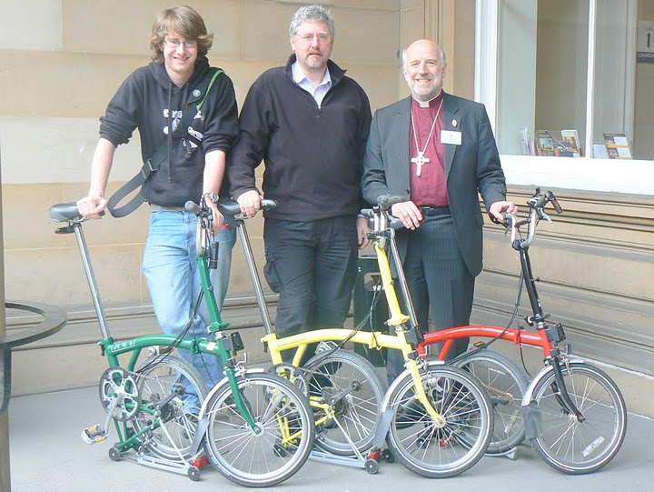 Well our General Synod was many things – but this of course was the ultimate eco-statement. Three Bromptons – self with Kennedy and David Frazer managed the various aspects of geekery for us. My arrival at Synod – and subsequent folding – never fails to excite comment