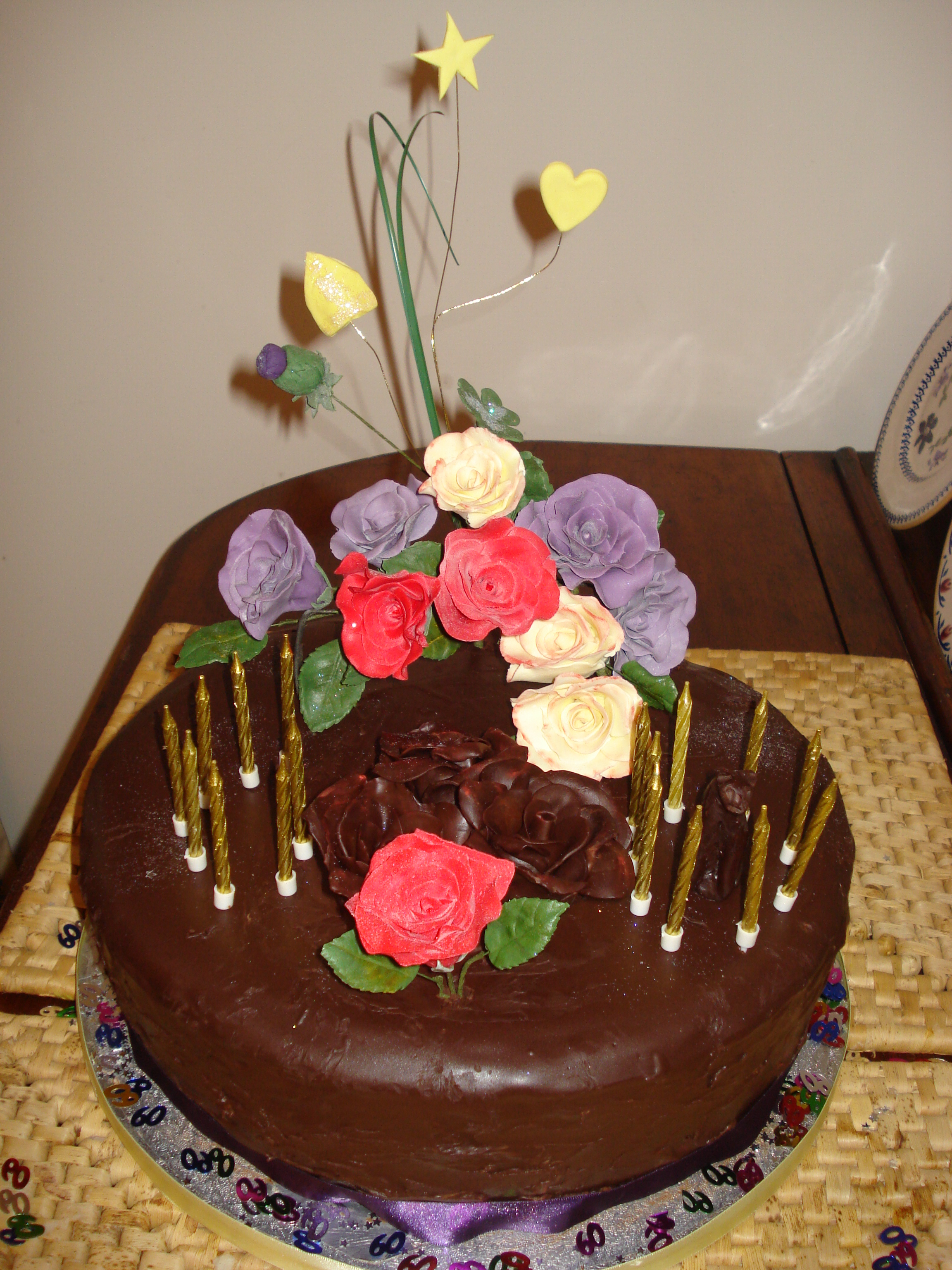 So I’ve made a determinedly up-to-date entry into the seventh decade – not before some more traditional celebrations here at Blogstead. This was the rather splendid Sachertorte – complete with spangly mitre and chocolate Poppy – made for the occasion by Philip. It was a great ‘do’ – full attendance of the Blogstead neighbours and friends. Another ‘blinking into the sunlight’ morning to follow.