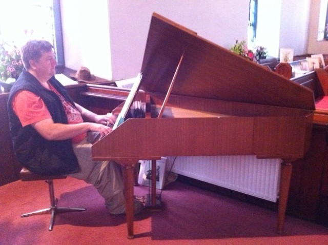 As I said, I’m not getting out much these days. So I did a bit of visiting today – a reflex action for clergy from my tradition of ministry – and took myself off to the East Neuk of Fife. Which meant testing whether the Polo will also achieve 65 mpg over – or under – water since most of the road from St Andrews seemed to be submerged. If you haven’t seen these villages which line the southern coast of Fife, give yourself a treat. They’re delightful former fishing villages tightly grouped around small harbours in a jumble of small streets. It also happens to be festival time – so I found this harpsichordist hard at work on John Blow and Scarlatti in St John’s, Pittenweem.