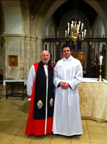 The pictures … one is important for our congregation at St Mary’s, Dunblane because it shows me with Tom Birch who is in training here. It also shows the preaching scarf with the Diocesan Crest beautifully embroidered by Heather Bovill.
