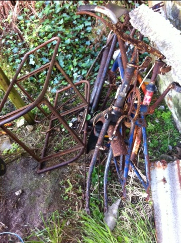 In the shed beside his cottage was his bicycle. This is the shed across the lane with the bicycle before that and the one before that.