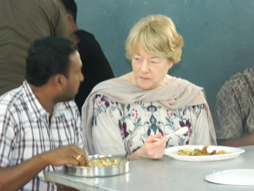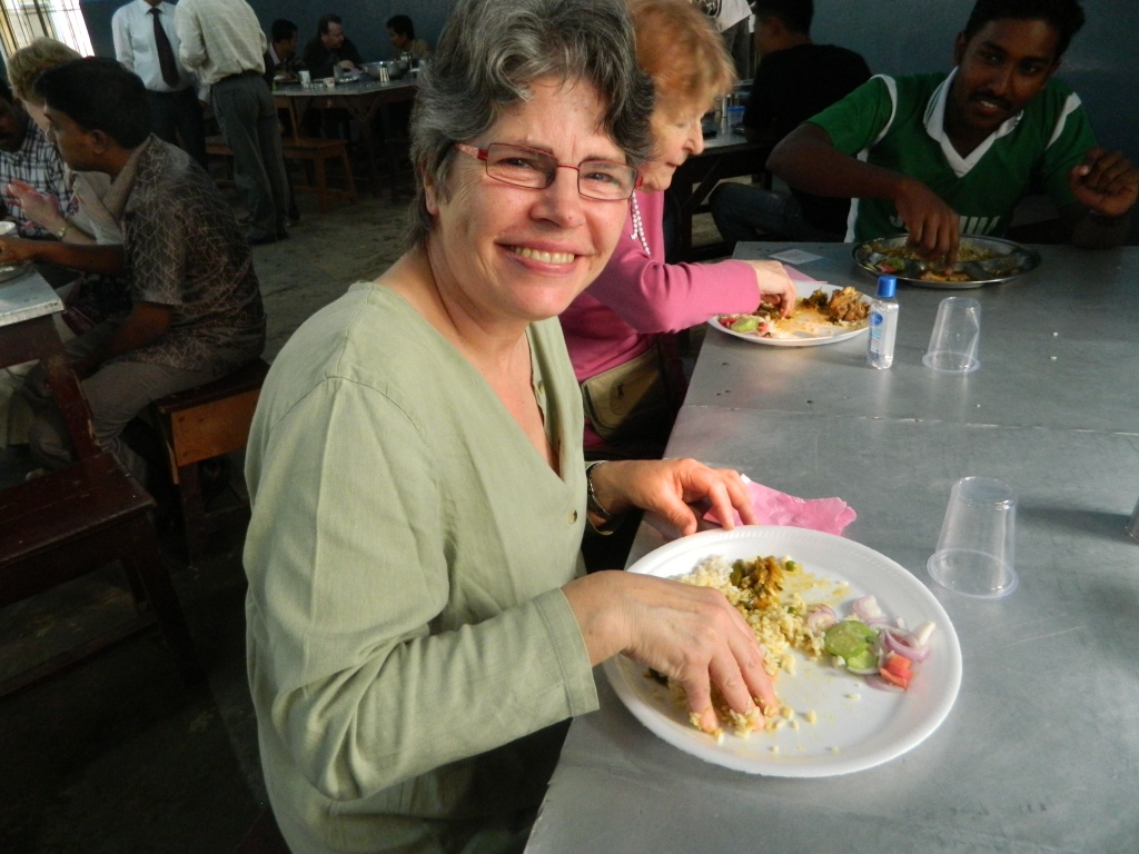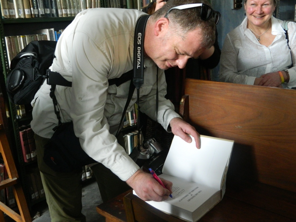 Professor Trevor Hart found one of his books in the library and autographed it. We had lunch with the students which involved learning to eat with the fingers.