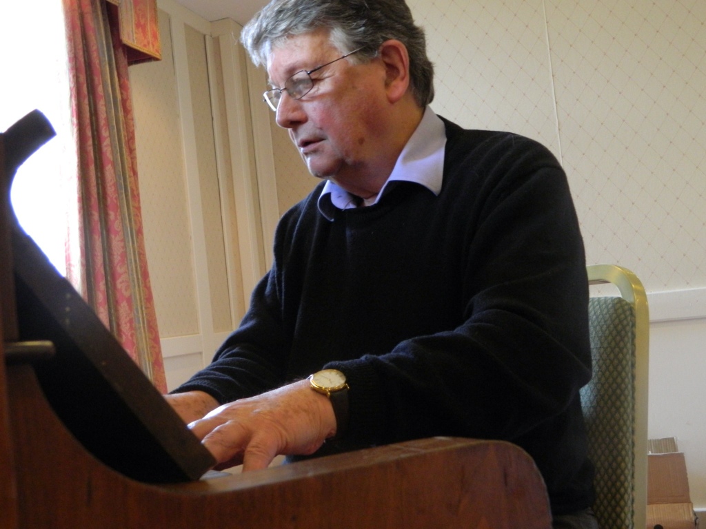 Above … Dean Kenny Rathband and Canon Dom Ind in group discussion. Rev Richard Evans of St Andrews, St Andrews who led the music in our worship