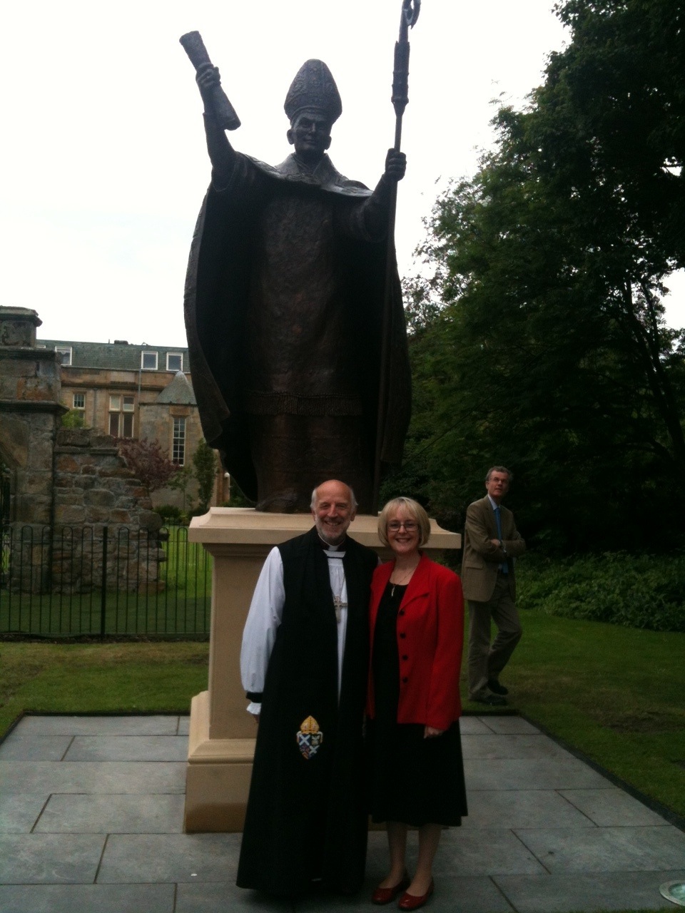 The statue was unveiled by the Chancellor, Sir Menzies Campbell. With me in the picture is Rachel Hart, Muniments Archivist and Deputy Head of Special Collections, who spoke about Wardlaw and the foundation of the University. It appears that we know each other quite well – that’s because her husband Trevor is about to leave his academic work at St Mary’s to become Rector of St Andrews, St Andrews. That’s a Petertide vocational gift!