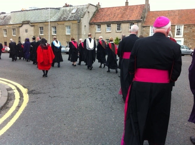 This is the Academic Procession following the 600th Anniversary Service for St Andrews University. Next but one ahead of me is the new Catholic Archbishop of St Andrews and Edinburgh, Mgr Leo Cushley. It was good to meet him and I look forward to getting to know him better.